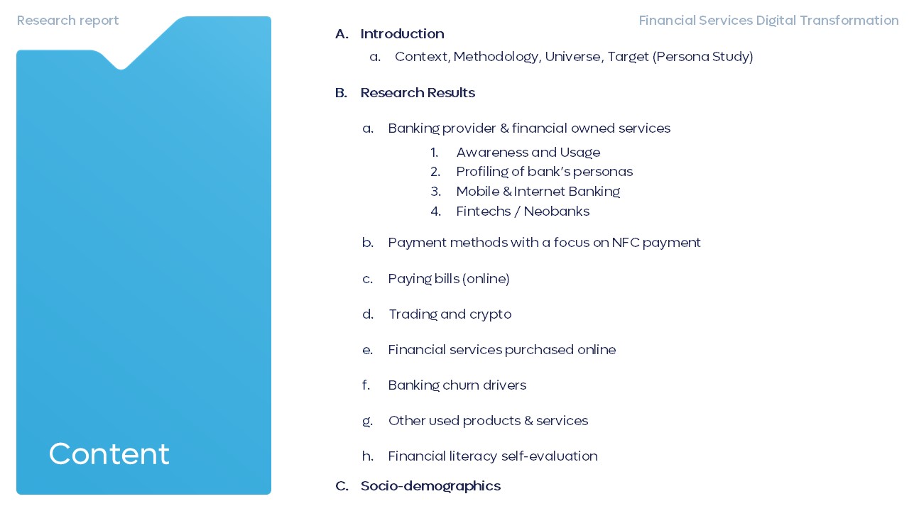 Showcases the digital evolution (2022 – 2025) and shifts in the financial services industry (banking, neobanking and insurance providers). It discerns and explores emerging trends in the behaviors of urban, daily internet users aged 18 to 65 with medium to higher education levels. Through this examination, we are at the forefront of unravelling the dynamics that shape the financial services industry and, in doing so, equipping our partners with the knowledge necessary to navigate this ever-evolving landscape successfully.